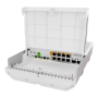 Le netPower Lite 8P est équipé de huit ports Gigabit Ethernet avec PoE-Out 802.3af/at, ainsi que de deux liaisons montantes 10G SFP+ pour un backhaul haut débit. Il fonctionne sous SwOS Lite, un système rapide, efficace et d'une simplicité rafraîchissante à gérer. L'alimentation électrique est flexible : il suffit d'alimenter le terminal à 2 broches en 24-57 V CC.